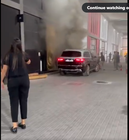 وأظهر الفيديو لحظات اشتعال النيران في السيارة وسط دهشة الحضور، فيما لم يُصب أحد بأذى.