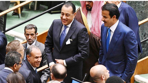 الدكتور مصطفي مدبولي، رئيس مجلس الوزراء، خلال إلقائه نيابة عن فخامة رئيس الجمهورية كلمة مصر في المؤتمر الدولي رفيع المستوي «من أجل التسوية السلمية لقضية فلسطين وتنفيذ حل الدولتين» بمبنى الأمم المتحدة فى نيويورك.