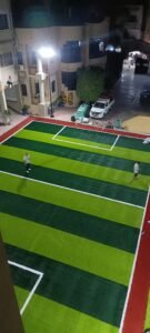 قدرته على تنفيذ الشغل بشكل احترافي، مع اختيار خامات عالية الجودة، خلت اسمه علامة معروفة وسط أصحاب المشاريع، خصوصًا اللي بيدوروا على حد يكون فاهم كويس تفاصيل تركيب النجيلة الصناعية واشتراطات الملاعب القانونية.